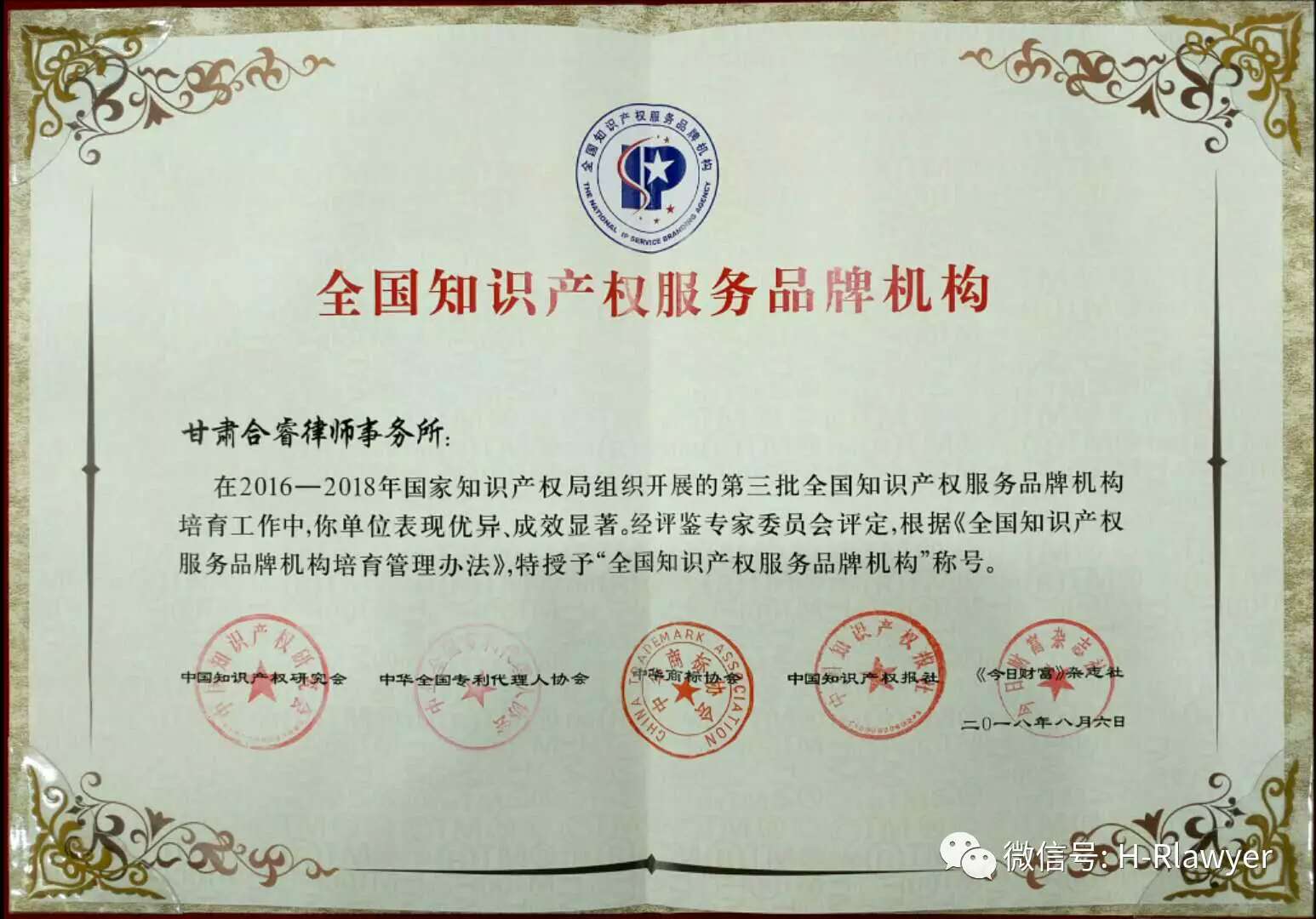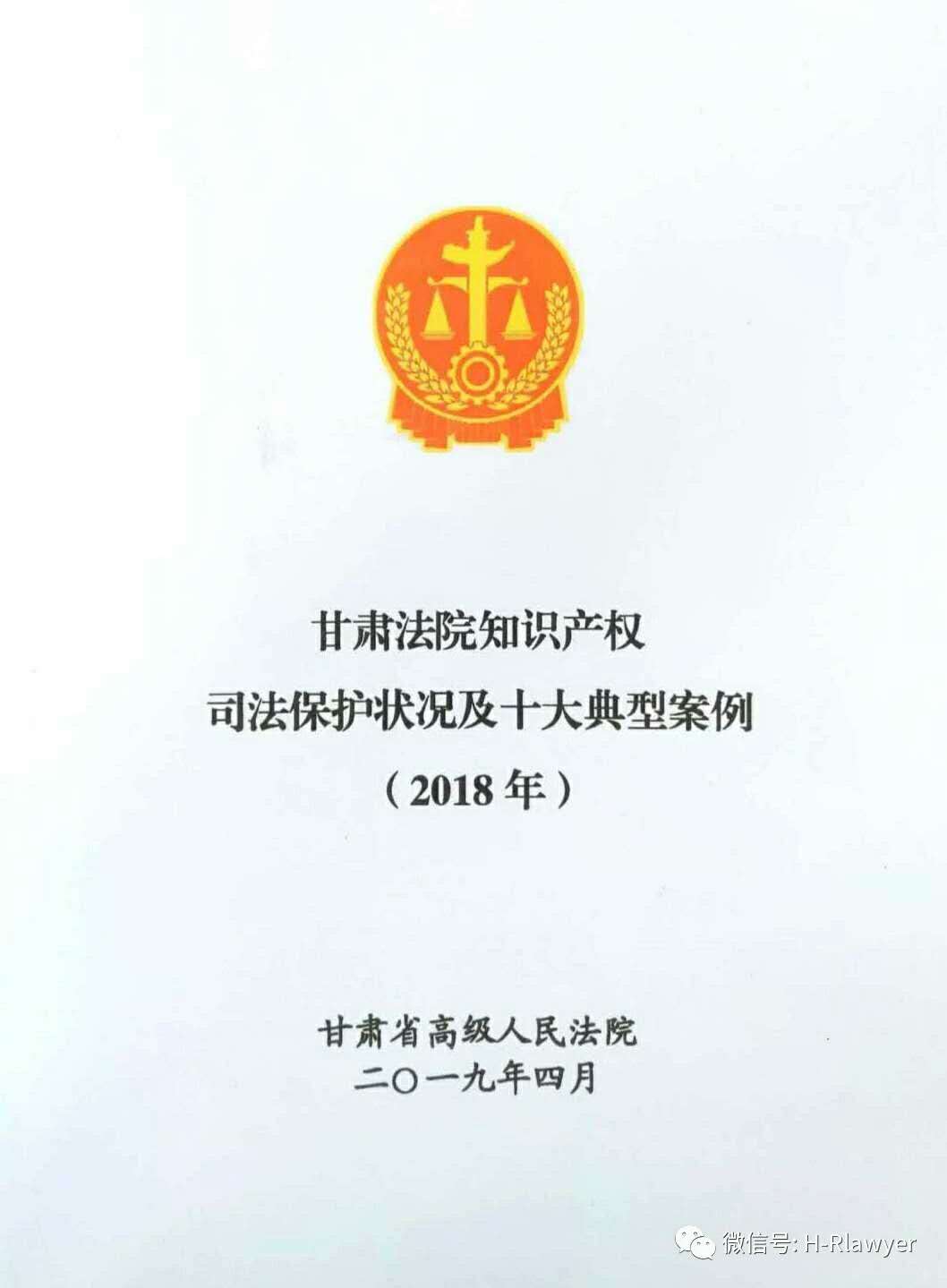 甘肃省高级人民法院在“世界知识产权日”(4.26)宣传周活动中公布了《甘肃法院知识产权司法保护状况及十大典型案例(2018)》,对全省知识产权司法保护总体情况、知识产权司法保护主导作用、知识产权司法保护体制、知识产权司法保护舆论氛围及知识产权司法保护组织保障等问题进行了全面详细的总结,评选出2018年度知识产权十大典型案例,其中三个案例由甘肃合睿律师事务所律师承办。