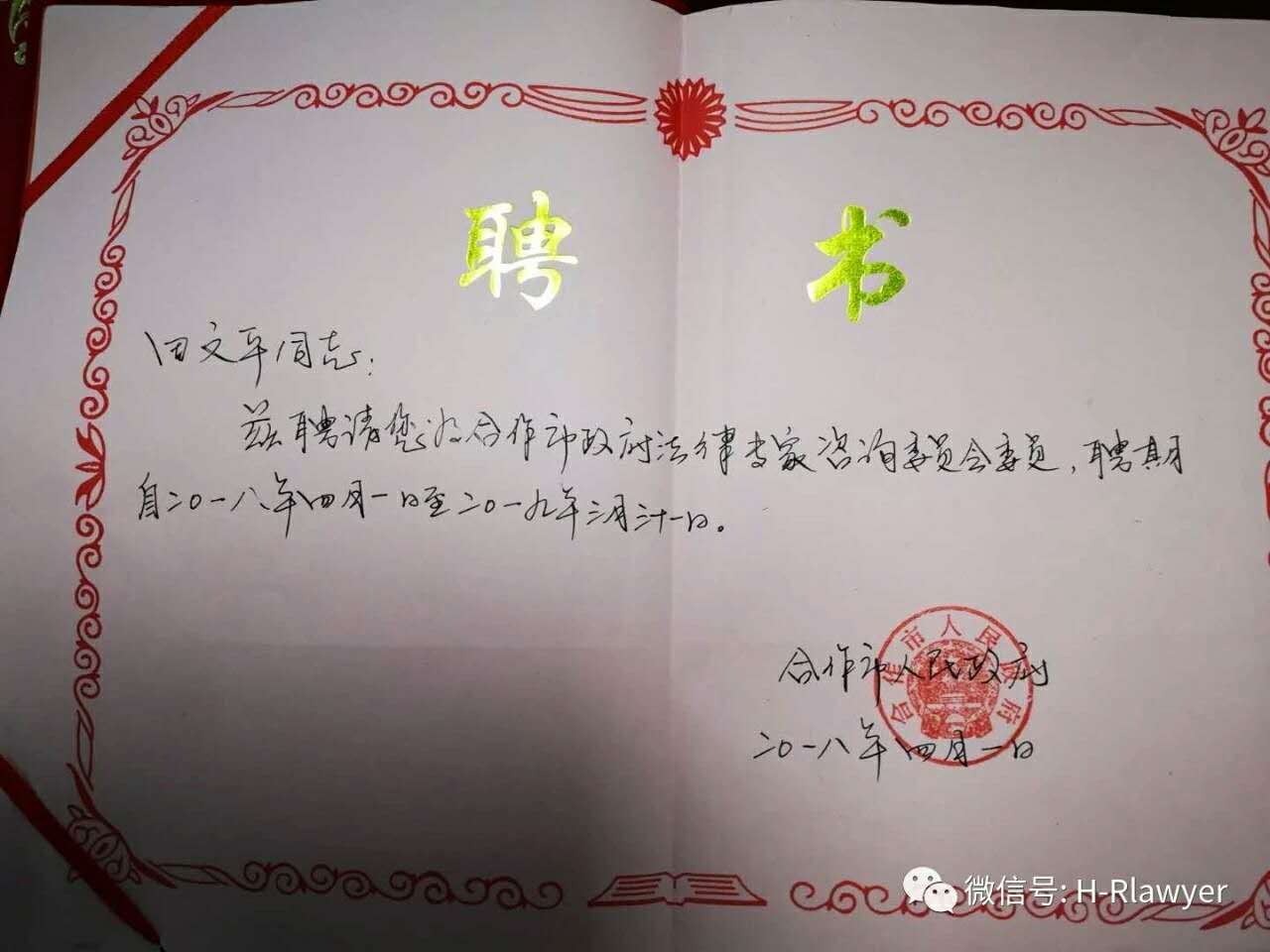 合睿律师事务所高级合伙人田文平律师积极参与政府法律顾问工作,将法律阳光照进陇原大地