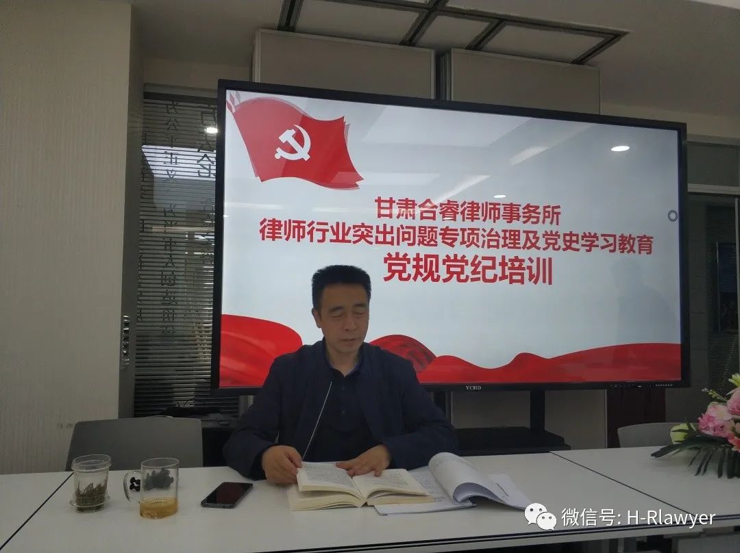 2021年04月16日,合睿所党支部书记王金贵为全体党员律师讲党课,学习毛主席“延安整风”三篇论著、“四史”以后,又对党规党纪和“不忘初心,牢记使命”论述进行了讲解。