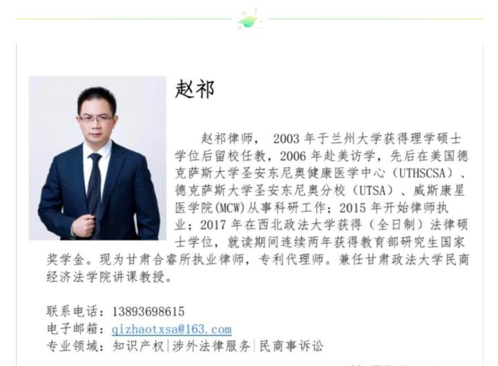 甘肃合睿律师事务所是全省首家取得专利代理资格的律所,4名律师具备专利代理人资格,涉及机械、化工、集成电路等领域。本团队在商标侵权、著作权侵权、专利侵权案件中具备丰富的诉讼经验,承办的诉讼案件多次入选甘肃省十大知识产权典型案例。在非诉领域可为企业提供全程知识产权保护、运用和转化法律服务,包括专利复审、无效、商标异议、无效,马德里商标注册、地理标志申请、各类知识产权尽职调查、知识产权评估、交易、转化,企业贯标辅导等服务。