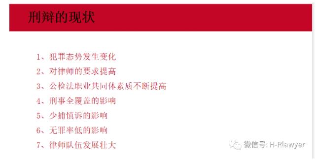 基于此背景,郭志勇律师认为目前的刑事辩护环境发生了以下变化:1、犯罪态势发生变化;2、全社会对律师的要求增高;3、公检法职业共同体的素质不断提高;4、刑事全覆盖已全面开展;5、少捕慎诉的影响;6、无罪率低的影响;7、律师队伍发展壮大的现状。