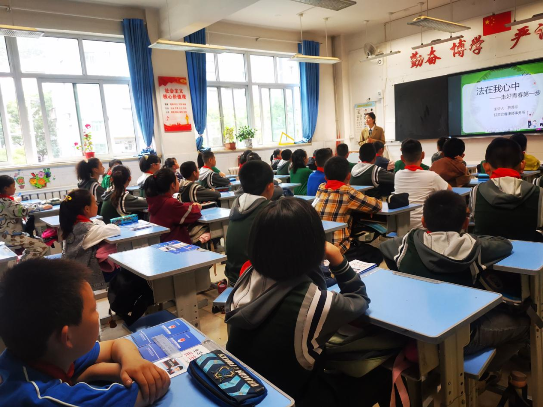 为进一步推动校园法治建设,增强广大师生的法治观念和自我保护能力,有效预防和减少未成年人违法犯罪,2023年6月2日,城关区铁路西村司法所联合甘肃合睿律师事务所在牟家庄小学开展了普法进校园,法治护成长活动。甘肃合睿律师事务所律师薛苏珍以“法在我心中,走好青春第一步”为主题向同学们分享了有关未成年人保护的相关法律知识。