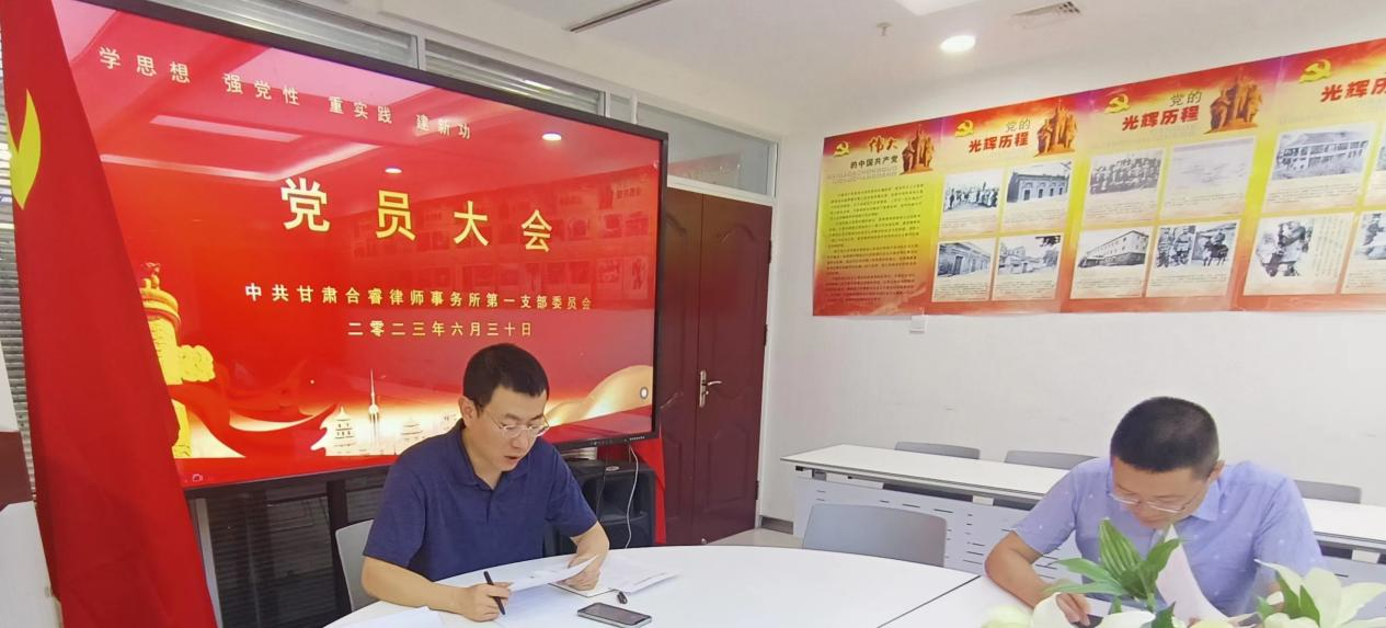 为进一步加强党员队伍建设,落实党支部发展党员工作计划,2023年7月4日,根据上级行业党委通知要求,中共甘肃合睿律师事务所第一党支部召开了接收于文龙同志为预备党员的党员大会。会议由第一支部书记于飞同志主持,参会党员共计27人。