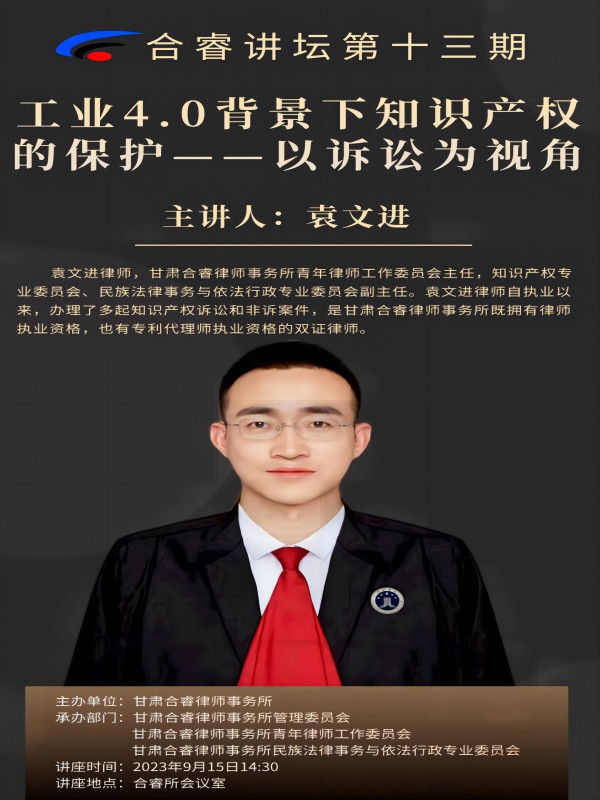 合睿讲坛第十三期之工业4.0背景下知识产权的保护 ——以诉讼为视角