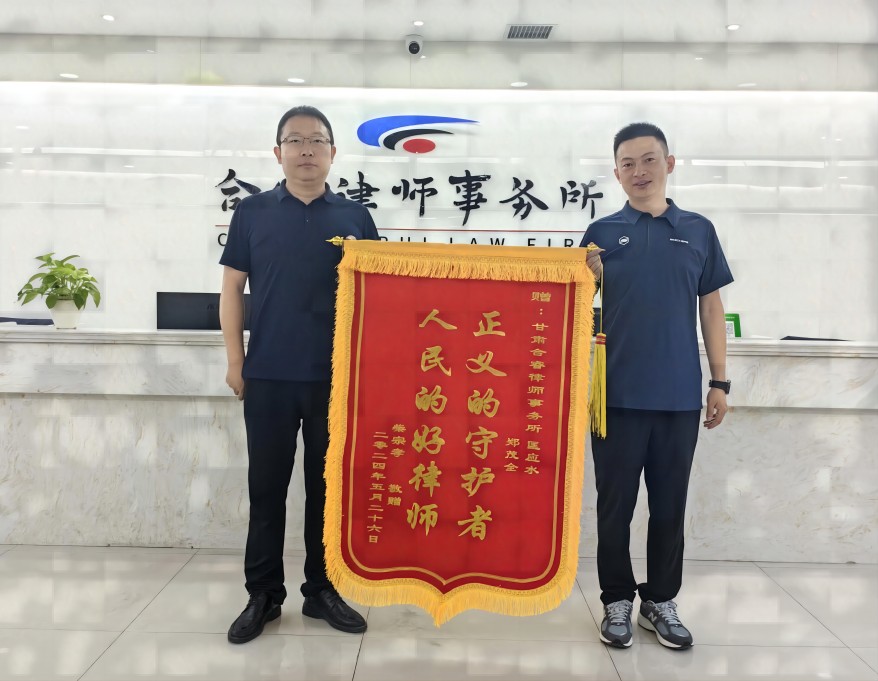 鲜红的锦旗代表当事人对匡应水律师和郑茂全律师维护人民群众合法权益的认可,也是对合睿律师事务所的鼓励。合睿律师将继续秉承“合众之睿,服务社会,努力做最受尊敬的律师”的理念,认真尽责,为当事人提供高效专业的法律服务,让每个当事人在每个案件中感受到公平正义。