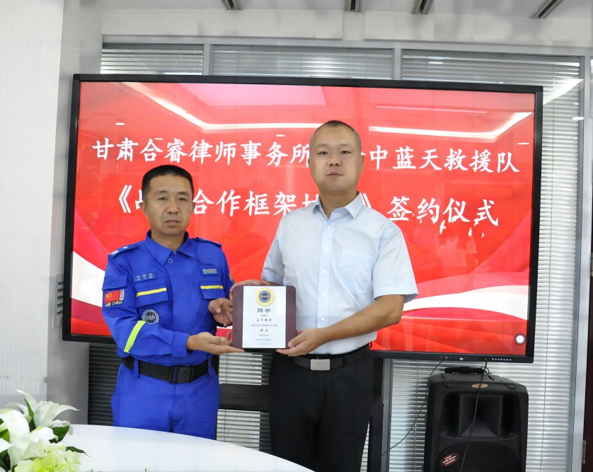甘肃合睿律师事务所王济律师团队致力于公益事业,为榆中蓝天救援队提供法律服务