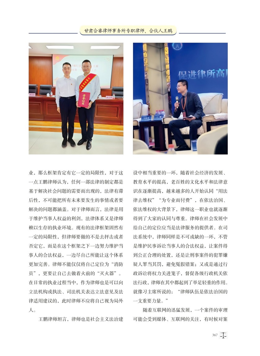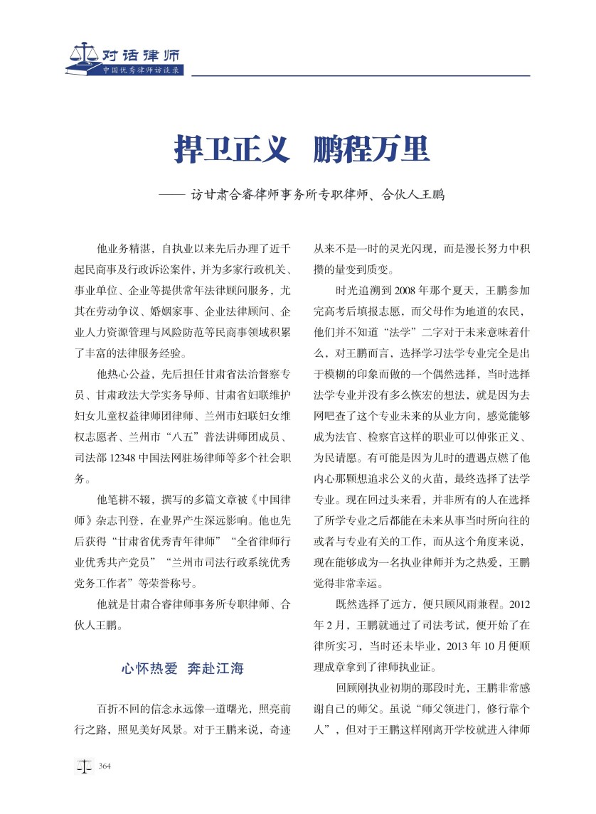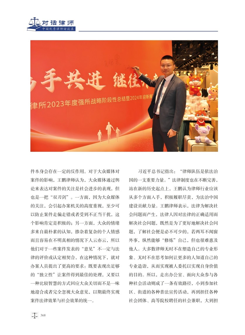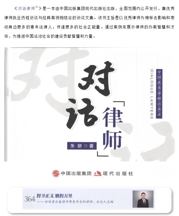 王鹏律师接受《对话律师——中国优秀律师访谈录》刊物专访