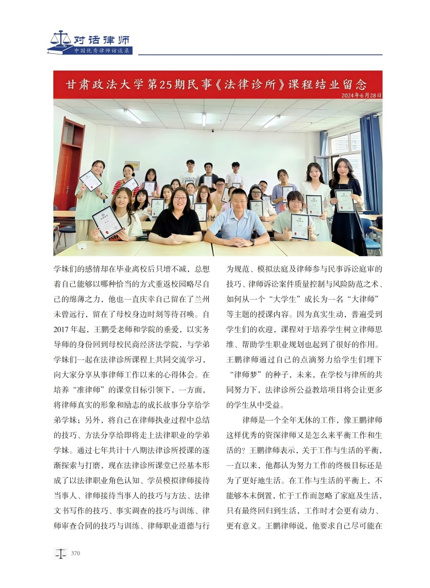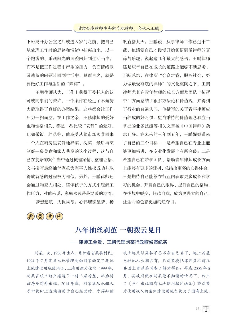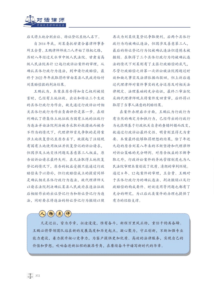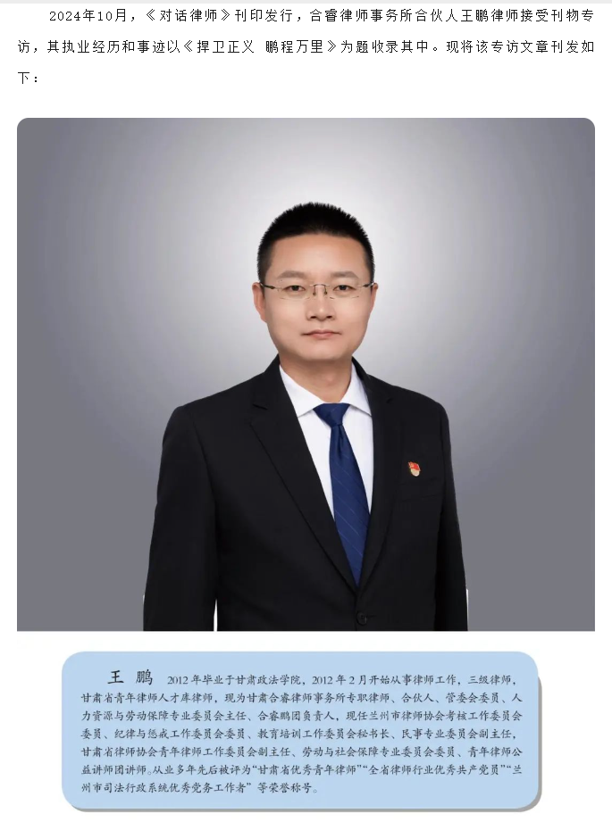 王鹏律师接受《对话律师——中国优秀律师访谈录》刊物专访