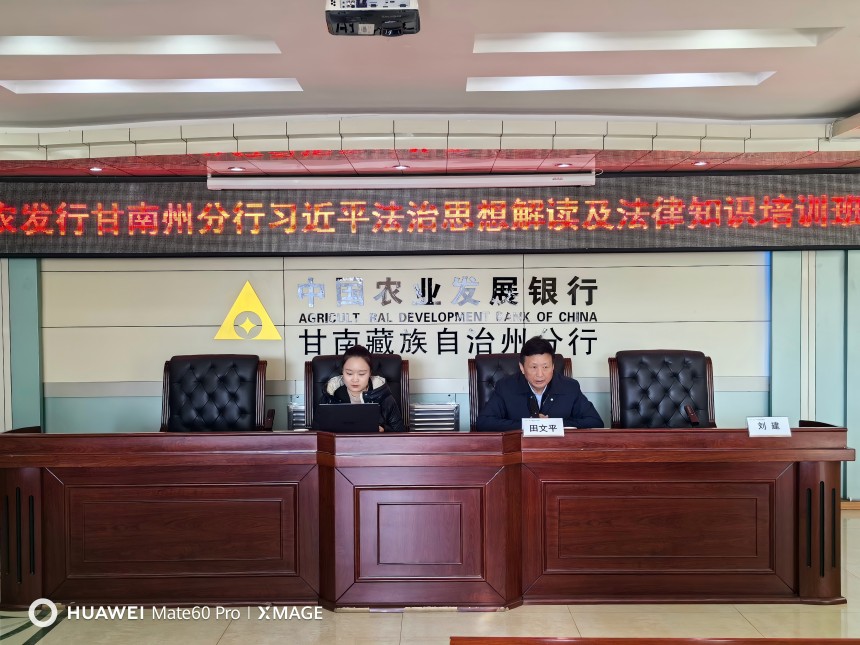 近日,中国农业发展银行甘南州分行举办习近平法治思想解读及法律知识学习。副行长刘建主持,行长王文武参加学习。