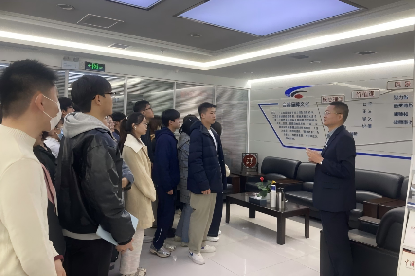王鹏律师深情讲述了合睿律所传承、创新下的发展历程,着重解读了律所“合众之睿,服务社会,努力做最受尊敬的律师和律师事务所”的文化核心理念和崇高追求,让同学们深刻体会到了合睿律所蓬勃的生命力和深厚的文化底蕴。