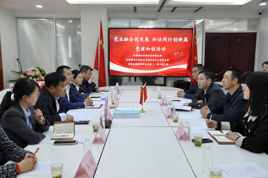 在全党上下全面开展学习贯彻中央八项规定教育精神之际,2025年4月15日,甘肃移动法律事务部党支部、甘肃移动兰州分公司城关区分公司党支部与甘肃合睿律师事务所第一、第二党支部在甘肃合睿律师事务所及甘肃5G联合创新中心联合开展“党业融合促发展,和法同行创新篇”主题党日活动,此次活动以2025年国家安全教育日为契机,力求通过党建引领,深化党业融合,推动双方在法治建设、业务发展、信息安全等方面实现合作共赢。