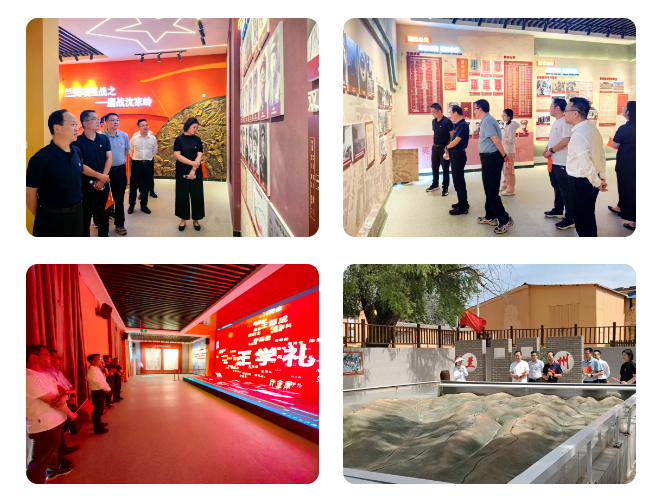 活动伊始,全体党员在活动中心广场处郑重列队,在中国信达甘肃资产分公司党委委员王立勇同志的带领下,唐录天、罗建虹、陈丽国等同志重温了入党誓词,庄重的誓言回荡在沈家岭战斗遗址,坚定了全体党员的信仰和初心。随后,双方人员跟随讲解员的脚步,来到素有“兰州锁钥”之称的兰州战役沈家岭战斗广场遗址。“1949年8月25日,连日阴雨不断的兰州骤然放晴,万里晴空如洗。及至傍晚天空一片金黄,照耀在大地上,却映照出刺目的红。山野间到处都是尸山血海,极目望去满眼残肢断臂。这里就是沈家岭,兰州战役中最惨烈的一处战场。而在这场战役当中,共有8700余名战士倒在了新中国成立的前夜……”聆听着讲解员的讲解,让全体人员仿佛置身于那段战火纷飞的岁月,深刻感受到革命先辈们的英勇无畏和坚韧不拔。在沈家岭战斗陈列馆内,馆内陈列的战斗文物、沙盘模型以及纪录片片段生动再现了那段波澜壮阔的革命历史,大家更是通过实地观摩战壕、指挥所复原场景,结合展板图文深入学习,对沈家岭战斗有了更为直观和深刻的认识。