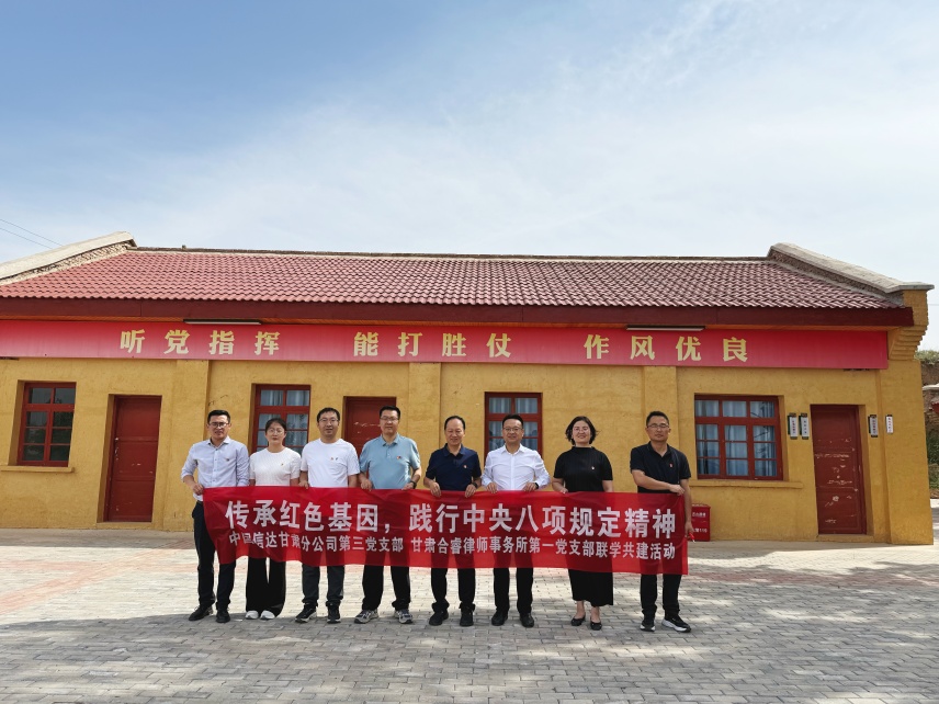 为深入贯彻新时代党的建设总要求,进一步加强党组织的党风廉政建设和纪律作风建设,扎实推进中央八项规定精神学习教育走深走实。5月29日,甘肃合睿律师事务所第一党支部与中国信达甘肃分公司第三党支部组织部分党员在沈家岭战斗红色教育基地联合开展了 “传承红色基因,践行中央八项精神”主题党日活动,甘肃合睿律师事务所管委会主任宋海龙及中国信达甘肃分公司党委委员、副总经理王立勇积极带头参加,旨在通过回顾革命历史,汲取奋进力量,推动红色传统与新时代纪律要求深度融合,筑牢思想根基。