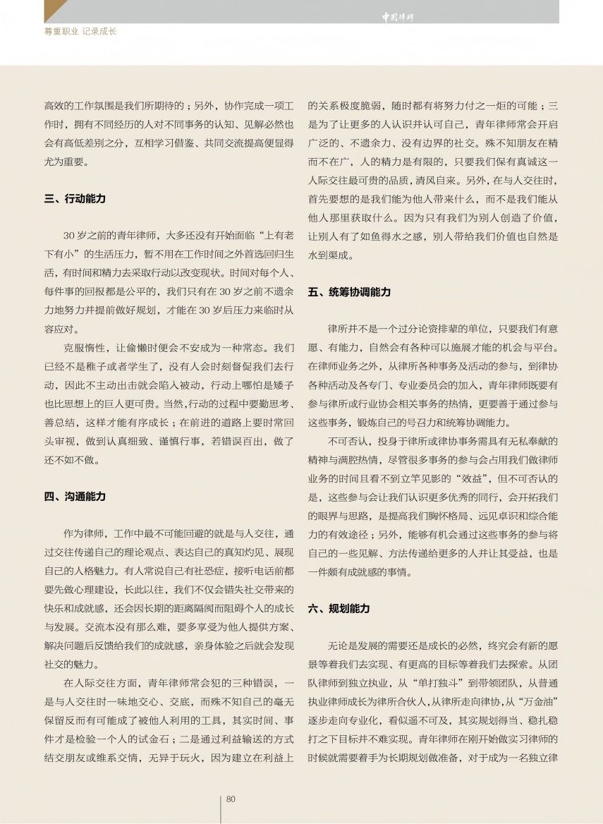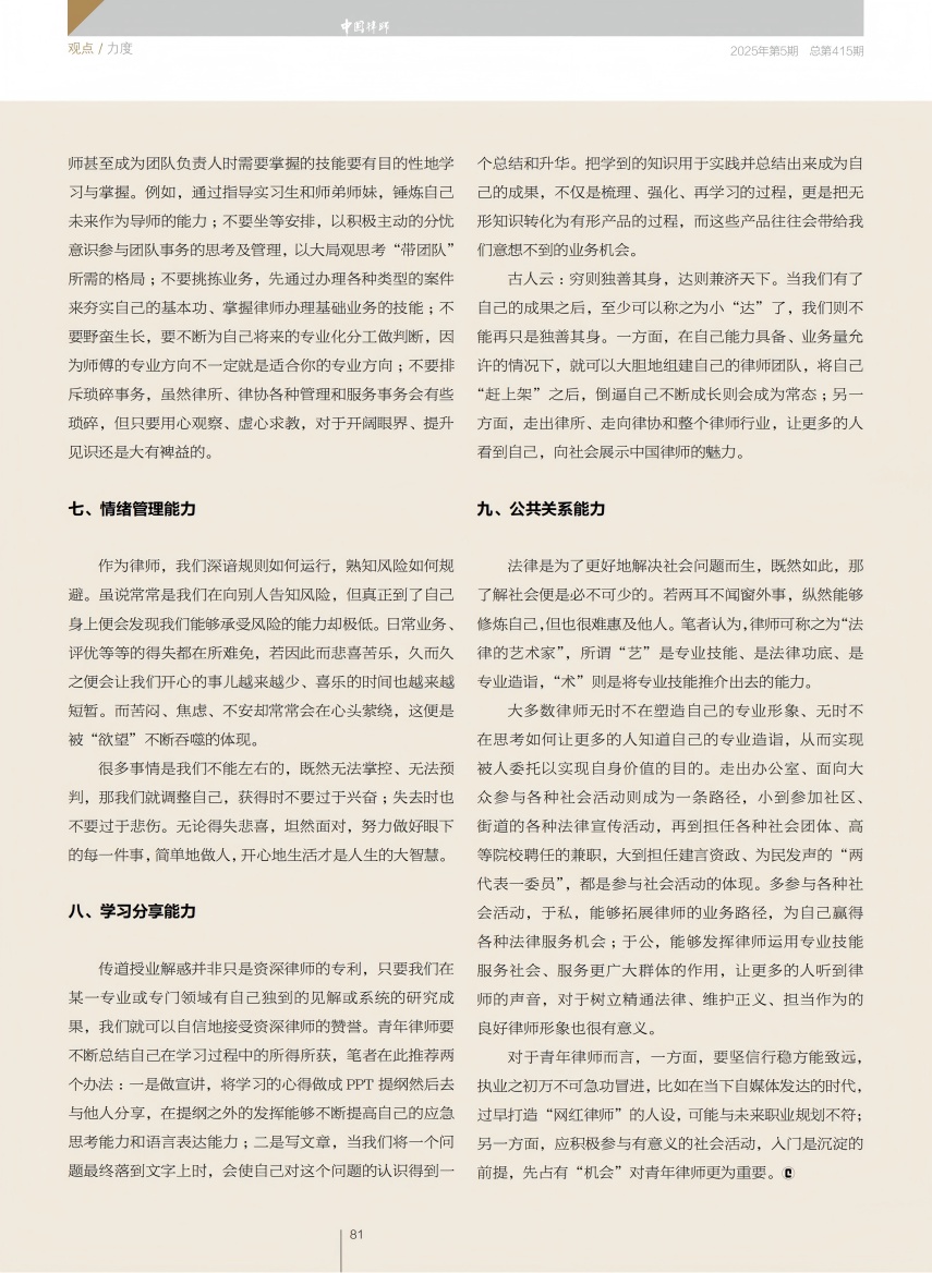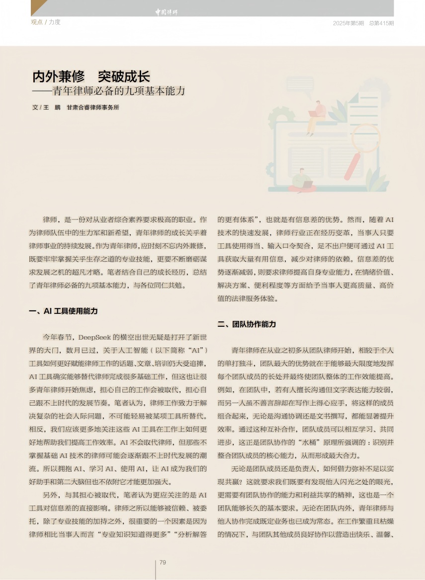 附:《内外兼修突破成长——青年律师必备的九项基本能力》原文,来源于《中国律师》杂志2025年第5期79-81页