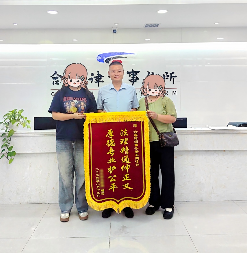 2025年8月20日,我所迎来了特殊的访客——冯某的妻子与女儿手捧一面写有“法理精通伸正义,厚德专业护公平”的锦旗,郑重地送到王鹏律师手中。母女俩眼含热泪,再三向王鹏律师表达感谢,这温情的一幕背后,是一段跨越六年的维权坚守。
