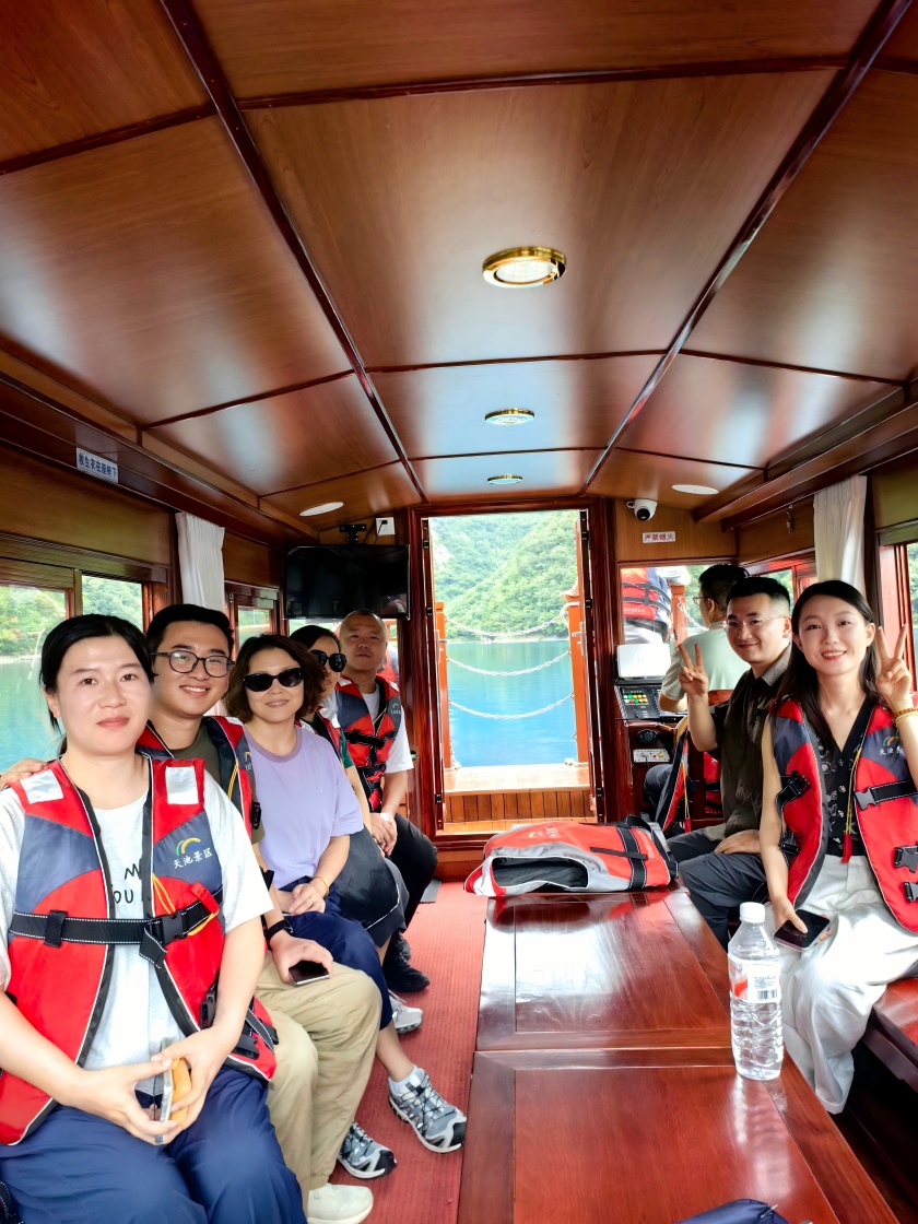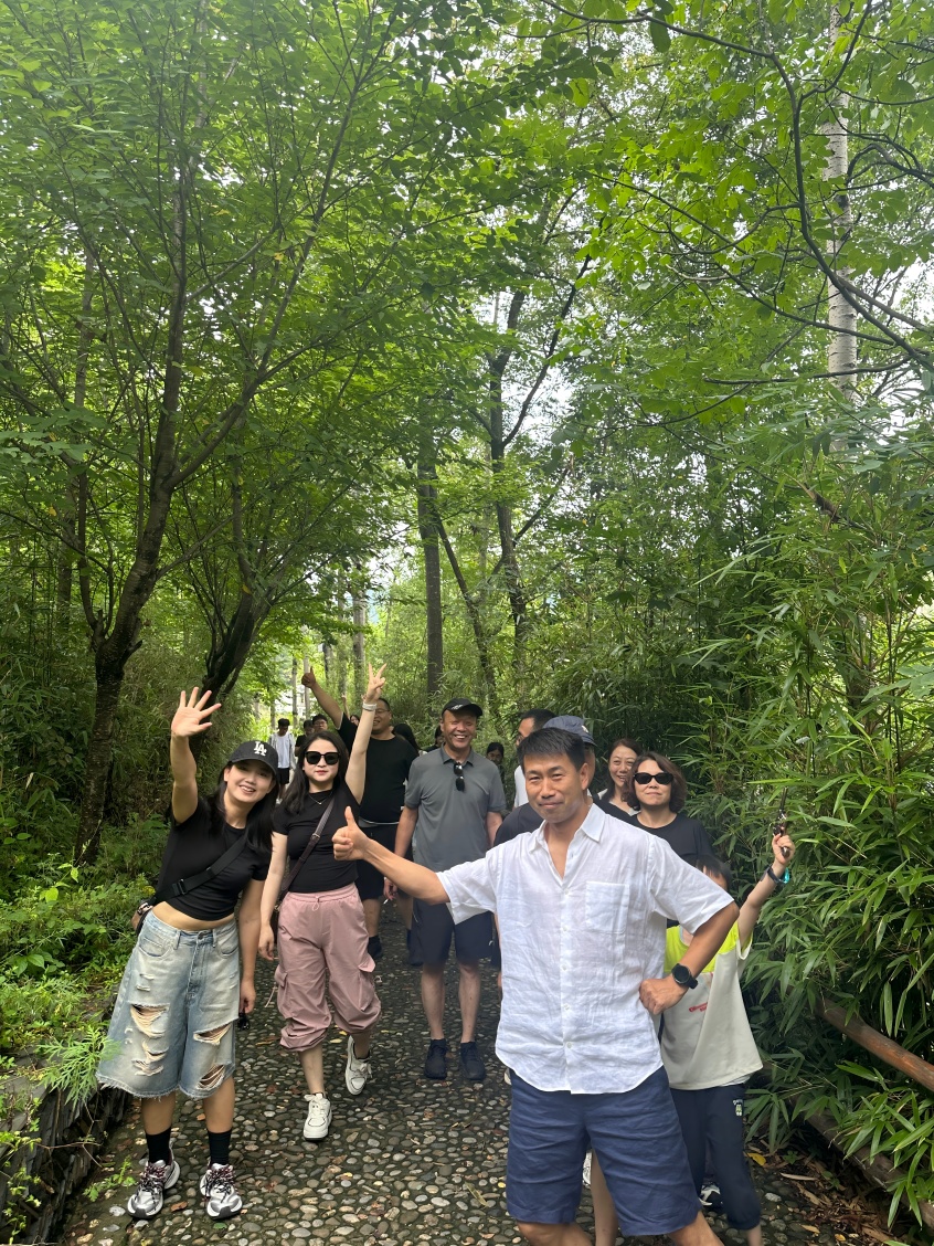 终章,落脚于青龙山旅游度假区。这里,深谷幽涧,林深木秀。我们沿石阶缓行,脚下水流声与笑声交错;山下亭阁小憩,山风把清凉和彼此的私语一并递来。归途中,千年菩提擎天而立,绿油油的叶片在风中翻动,像无数枚为团队写下的勋章——岁月在此刻弯腰,为我们无声加冕。原来,风景从不限于地名,同行的人才是途中最亮的坐标。当大巴启动,后视镜里的青山渐渐合拢,我们把已得的情谊揣进胸怀,继续并肩,续写新的篇章。