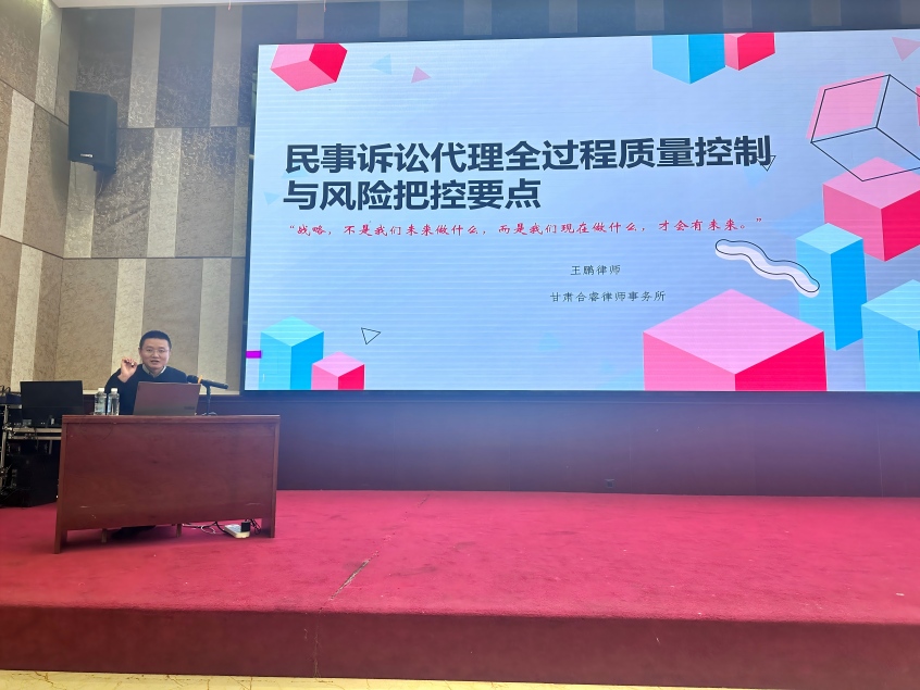 2025年12月4日下午,正值第十二个国家宪法日,甘肃合睿律师事务所合伙人王鹏律师,应甘南藏族自治州律师协会之邀,在第十二个国家宪法日碌曲县系列活动暨全州律师培训学习会上作了题为《民事诉讼全过程质量控制与风险把控要点》的专题讲座。甘南藏族自治州各县司法局及法律援助中心工作人员、全州执业律师及实习律师等共同参与了交流学习,培训会由甘南藏族自治州律师协会会长李平主持。