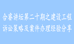 合睿讲坛第二十期之建设工程诉讼策略及案件办理经验分享