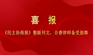 喜报:《民主协商报》整版刊文,合睿律师备受鼓舞