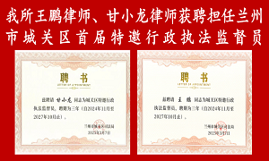 我所王鹏律师、甘小龙律师获聘担任兰州市城关区首届特邀行政执法监督员