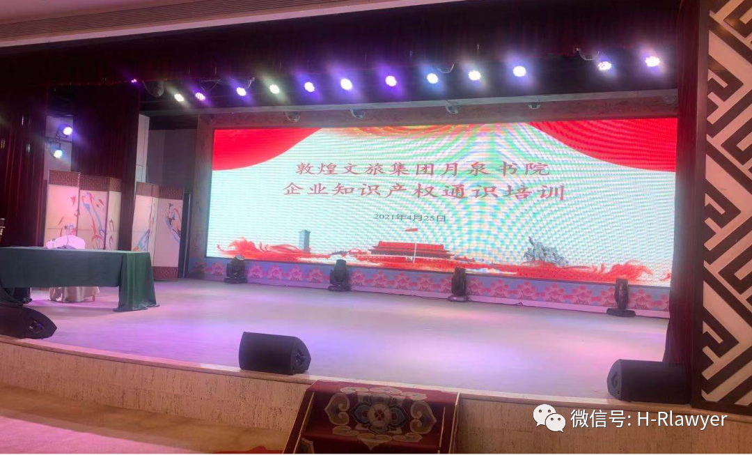 2021年4月25日,合睿知识产权部应敦煌文旅集团公司的邀请,对全集团和月泉书院各业务领域的负责人员作主题为“企业知识产权通识与《民法典》框架下相关知识产权法律亮点解读”的专题培训。敦煌文旅集团董事长孙晓强、总经理魏建军、副总经理王立军、刘霞霞等主要领导参会并主持本次专题学习。