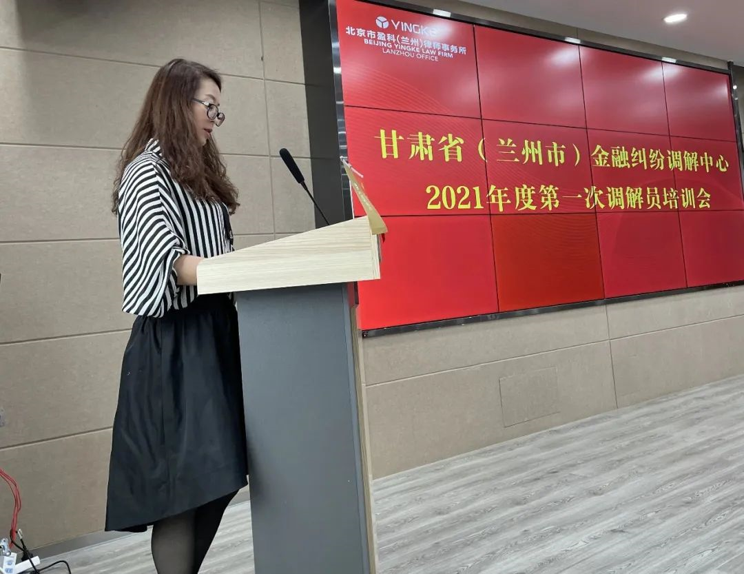 甘肃省金融纠纷调解中心律师调解室暨律师调解员培训会议于2021年5月18日14:30在北京市盈科(兰州)律师事务所举行,我所张馨律师受邀出席会议,并对调解员进行培训。兰州铁路运输法院民事审判庭庭长强唐生、省金融纠纷调解中心副主任吴小燕以及调解员60余名参加会议。