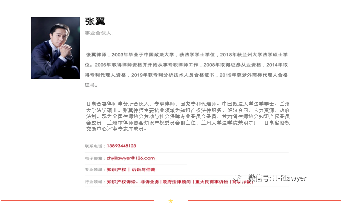 甘肃合睿律师事务所是全省首家取得专利代理资格的律所,本所知识产权部由合伙人张翼律师负责,由8名执业律师组成,其中四名律师具备专利人资格,涉及机械、化工、集成电路等领域。本团队在商标侵权、著作权侵权、专利侵权案件中具备丰富的诉讼经验,承办的诉讼案件多次入选甘肃省十大知识产权典型案例。在非诉领域可为企业提供全程知识产权保护、运用和转化法律服务,包括专利复审、无效、商标异议、无效,马德里商标注册、地理标志申请、各类知识产权尽职调查、知识产权评估、交易、转化,企业贯标辅导等服务。