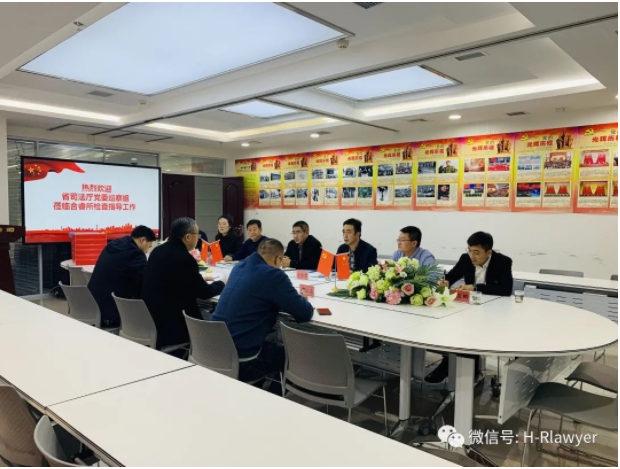 2021年11月24日下午,甘肃省司法厅党委第二巡察组牛江晖、段国平、吴让东一行莅临甘肃合睿律师事务所检查指导党建工作,兰州市律师行业党委专职副书记杜保录陪同。