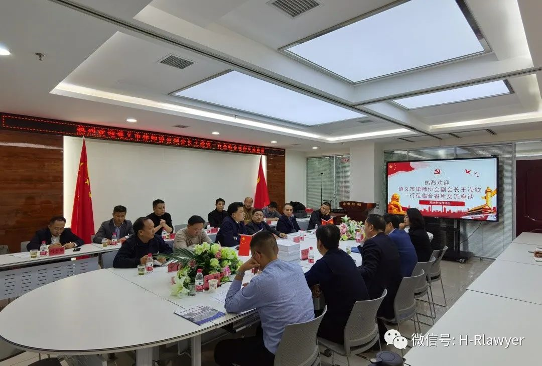 2021年10月15日下午,遵义市律师协会副会长王滢钦及惩戒委员会委员一行莅临合睿所观摩交流,兰州市律师协会副会长赵文卿、惩戒委员会主任徐进、秘书长李纬陪同,合睿律所合伙人王鹏律师、行政总监程东升同志热情接待了交流团一行。