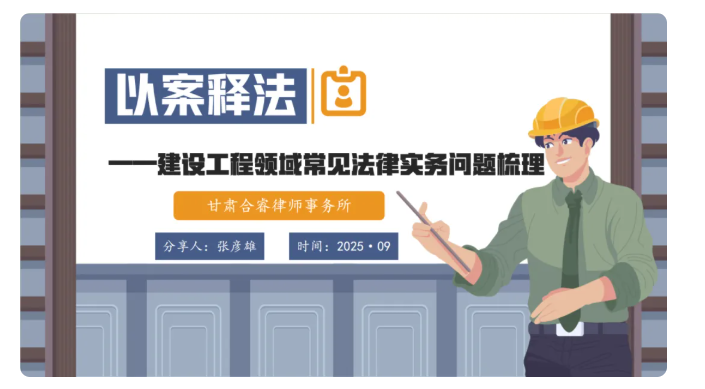 2025年9月12日,合睿律师事务所张彦雄律师受邀,以“线上+线下”双渠道模式,为中国移动通信集团甘肃有限公司(以下简称“甘肃移动”)及全省各市州分公司,开展了题为《“以案释法”——建设工程领域常见法律实务问题梳理》的专题法律讲座。
